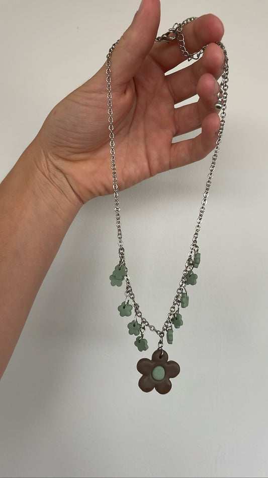 Handmade upcycled polymer clay flower power chocker necklace