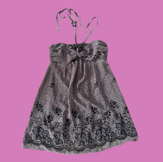 00’s red/grey stripe lace spaghetti strap fitted tank