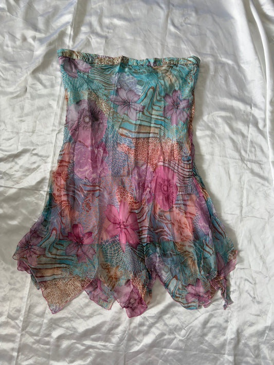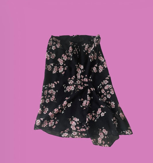 00’s sheer layered black/cherry blossom flowy midi skirt
