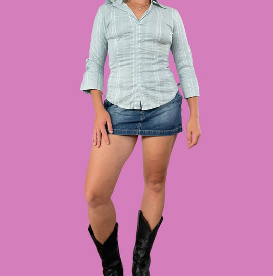 90’s/00’s light blue fitted 3/4 sleeve blouse